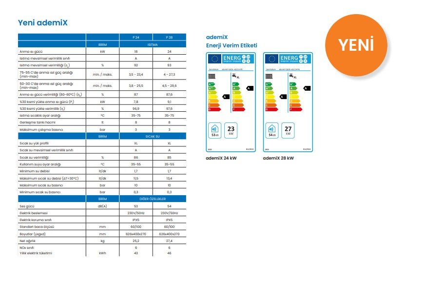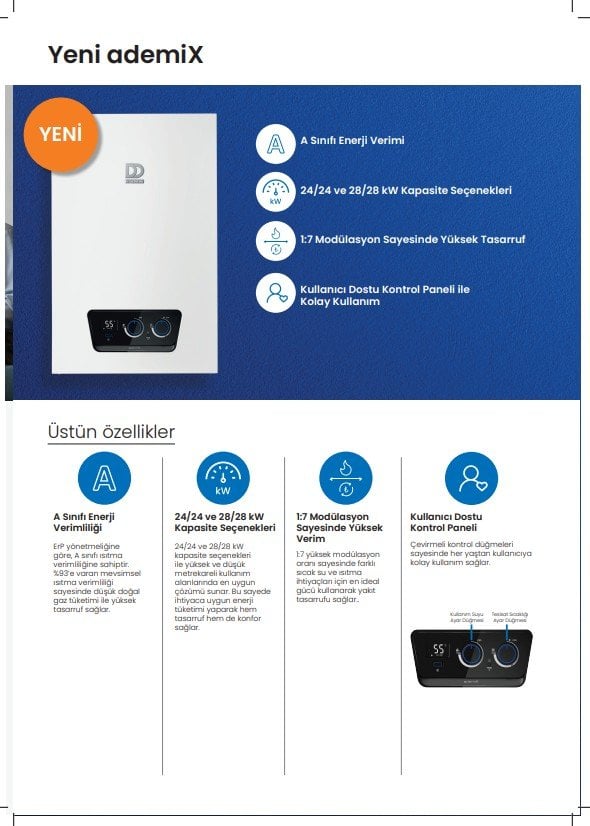 DEMİRDÖKÜM YENİ ADEMİX 28/28 KW YOĞUŞMALI KOMBİ